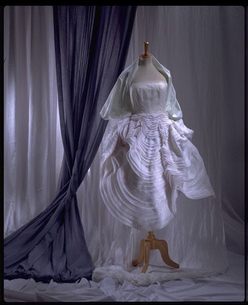 Pentru colecția din 1987, va crea niște piese remarcabile- așa numitele Shellfish dresses- destinate doar comenzilor unicat. Straturi de organza voluminoase gândite pe o infrastructură realizată de Crichton în atelierul său și apoi adusă la studio unde Galliano și-a lăsat amprenta specifică.