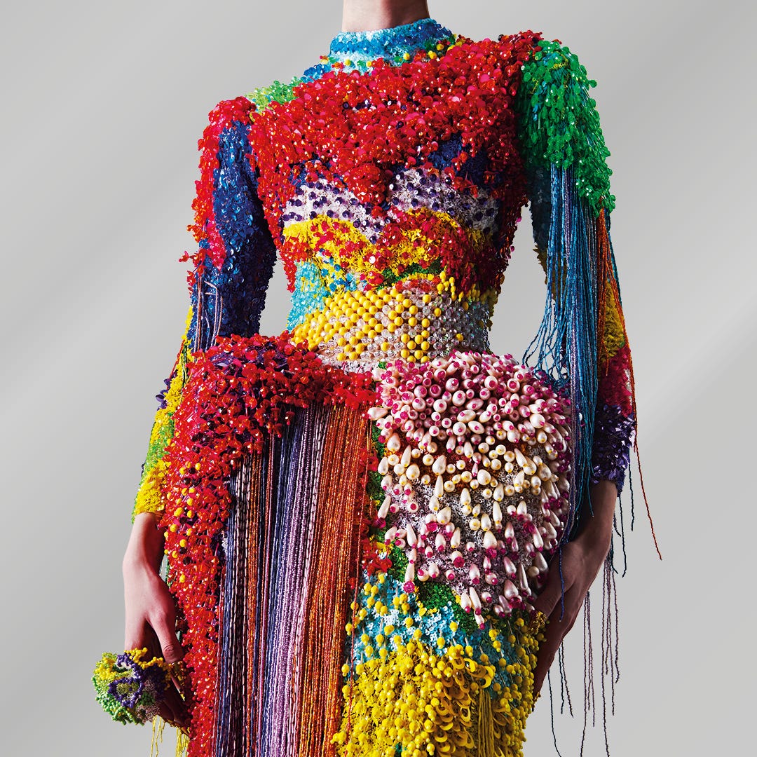Absolvent al Central Saint Martins din Londra, demersul său de creație este axat în primul rând pe sustenabilitate și favorizează moda circulară. Toate creațiile sale sunt realizate din materiale recuperate, chestiune de care nu prea îți dai seama. Ceva ce poate semăna a pungă tăiată în fâșii și vopsită conturează impresia de rafie în degrade, sau creioane numeroase, de lungimi diferite îți creează senzația unor șiraguri de mărgele.