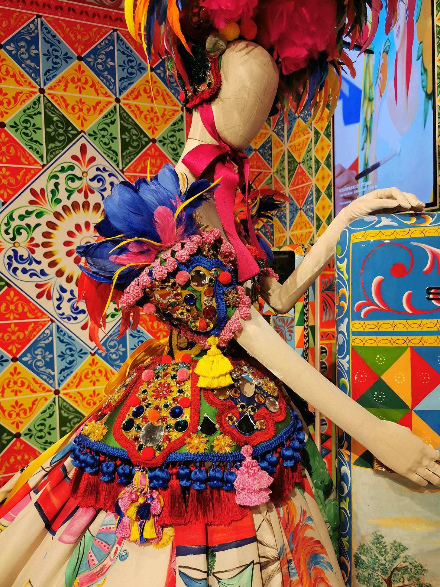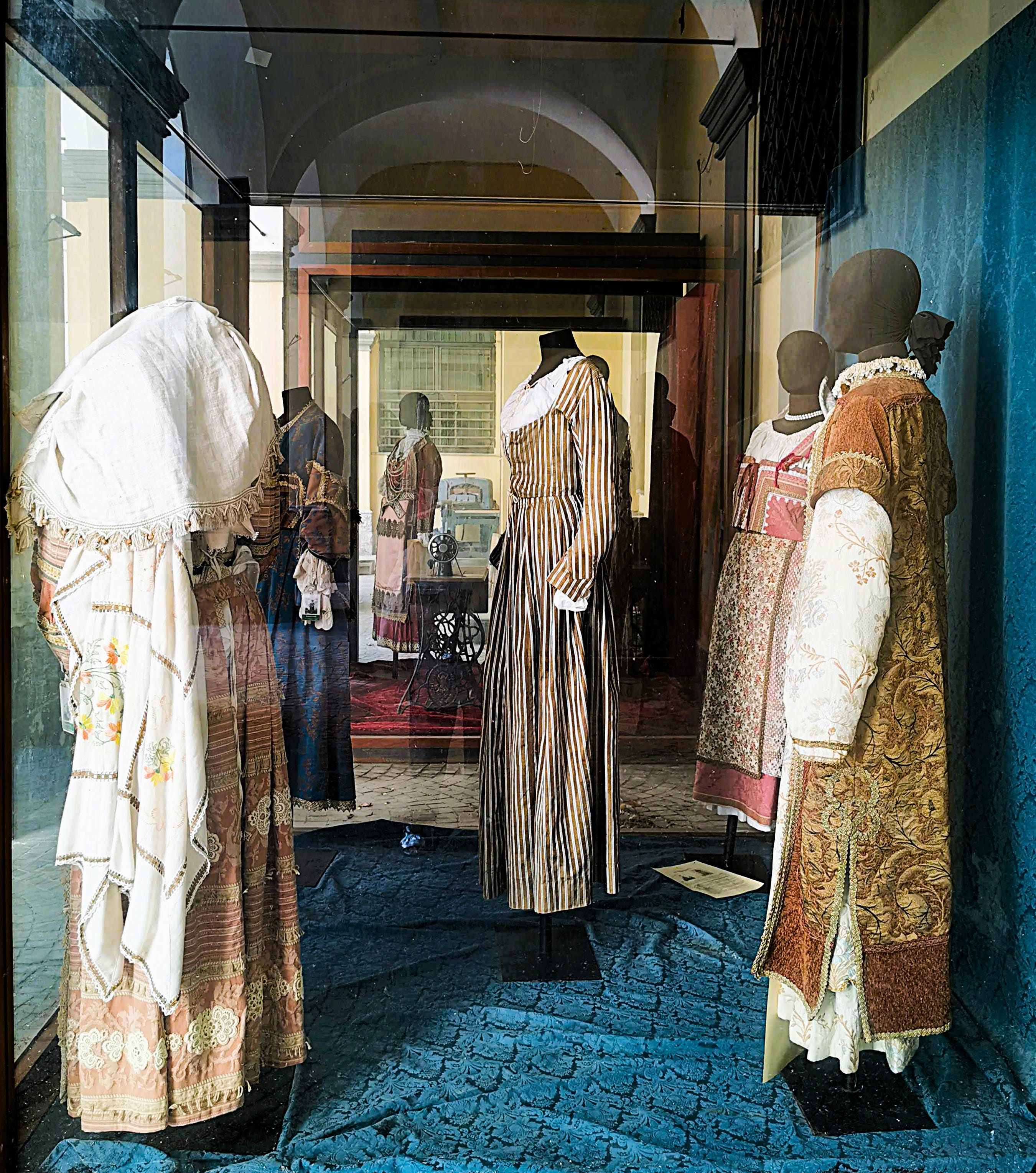 Am agreat soluțiile de ambientare, amuzante și foarte diferite comparativ cu altele, unde era evident că muzeul fiind susținut din finanțare privată nu exista variante atît de copleșitoare vizual ca la Paris sau Milano. Cu toate acestea mi-a plăcut teribil pentru că eram singură în muzeu, ineditul expunerii, a manechinelor sculpturi de afară ce străjuiau clădirea și vitrinele uriașe de sticlă ce adăposteau costume tradiționale ale Campaniei.